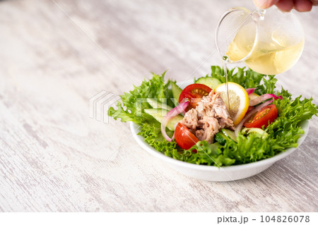 ツナサラダ シーチキンサラダ サラダ(板背景)