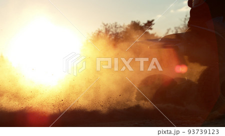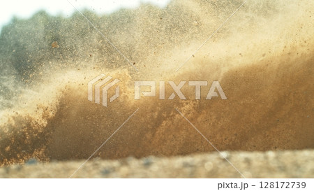 Detail view of flying dust particles into the air. Freeze motion of exploding clay.