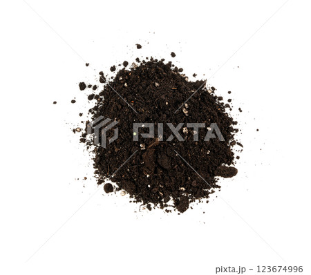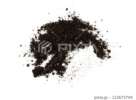 Succulent soil isolated. Dried dry dirt, ground pile, manure soil, arid dirt, natural black turf, dirty earth texture