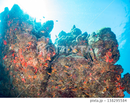 ドロップオフのキンギョハナダイ、キホシスズメダイ、ソラスズメダイ他の群れ 賀茂郡南伊豆町中木ヒリゾ浜