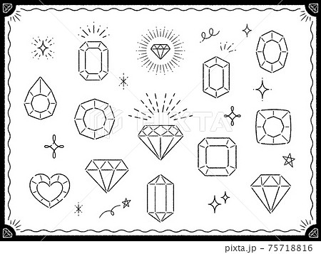 宝石の手描き風イラスト・星アイコン・フレームのセット