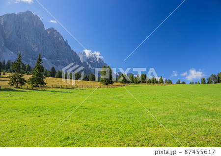 北イタリア ドロミテ フネス谷の山小屋に併設された牧草地