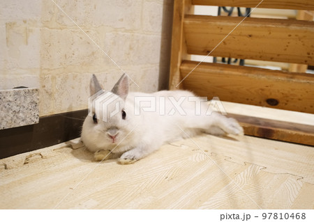寝転んでくつろぐネザーランド・ドワーフ(うさぎカフェ)4