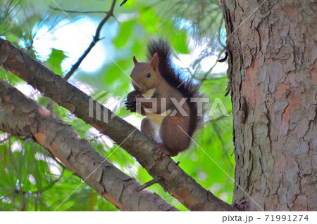 どんぐりを食べるリス、岐阜県金華山のリス村