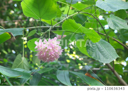 調布市深大寺元町の植物園に咲くピンクのドンベア(里見の春)の花