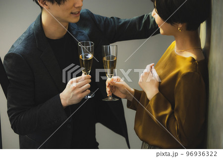 シャンパンで乾杯するカップル