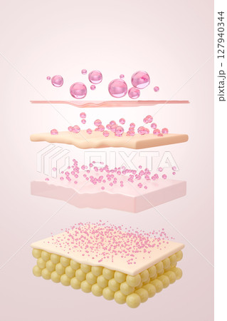 シワ改善 アンチエイジング美容液の多層浸透イメージCG