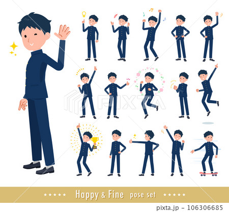 学ランの学生 男子 全身 上向き矢印 笑顔