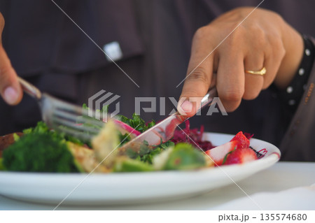 Eating a fresh salad at a local restaurant during lunch