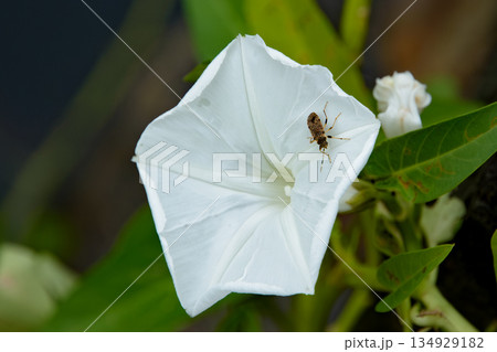 白いヨルガオにカメムシ