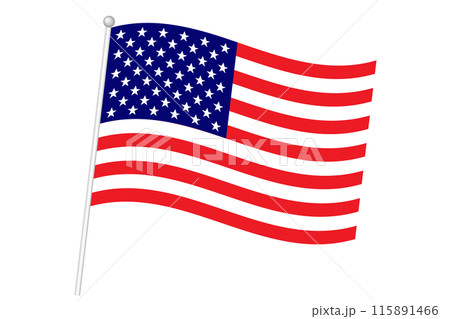 風に揺れるアメリカ合衆国の国旗のイラスト