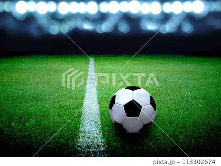 soccer Football on Corner kick line of ball and a soccer field , football field , background texture
