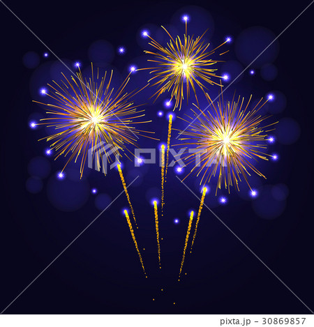 Abstract fireworks on a Dark Blue Background. Design for New Year Christmas wedding festival birthday national holiday and advertising campaign. For postcard poster banner animation.