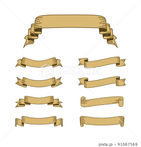 シンプル、ミニマルな、パステルベージュカラーのリボンバナーセット