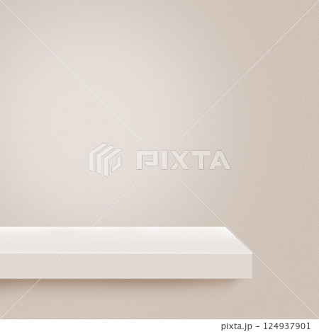 白い棚ベージュ茶系色背景イラスト シンプル モックアップ素材