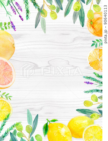 筆タッチのオレンジやレモンの柑橘系イラストセット