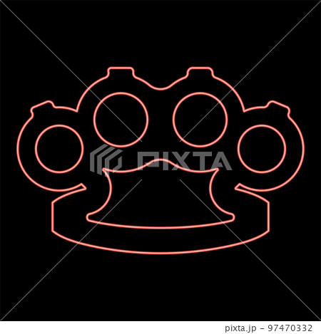 Neon knuckleduster Knuckles Weapon for hand red color vector illustration image flat style