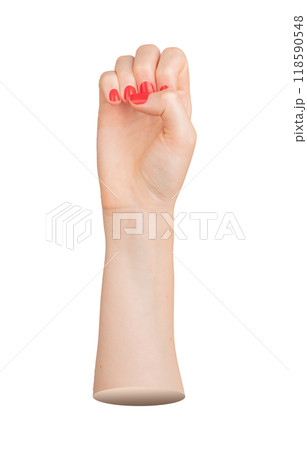 Hand with fingers slightly bent, showing a gripping gesture. Isolated on a white background. Process