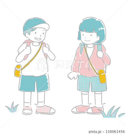 ピクニックや遠足を遠足を楽しんでいる子供たちのイラスト