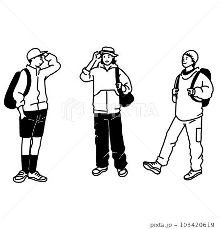 アウトドアファッションの男性ベクター線画