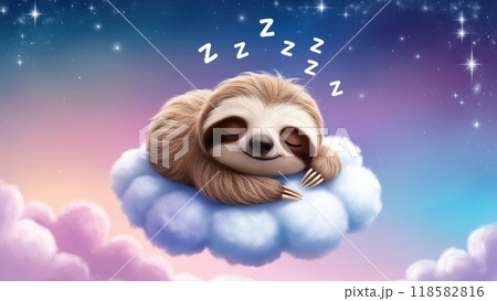 雲の上で眠る夢かわいいナマケモノ