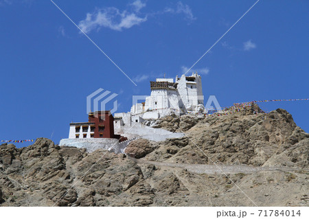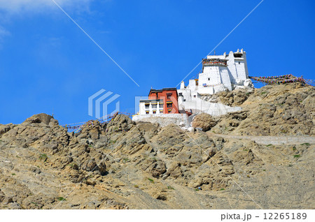 インド最北の秘境、ラダック地方レーの僧院ではためくタルチョ