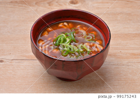 なめこの味噌汁、ナメコのみそ汁。お味噌汁、赤だし味噌。