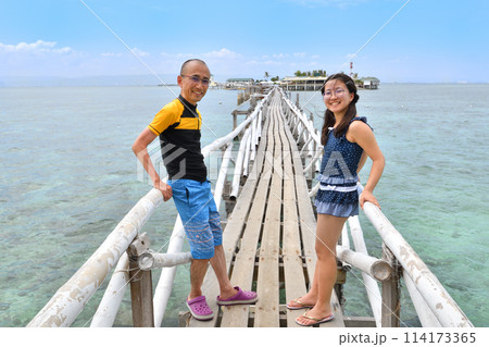 アイランドホッピングを楽しむ親子(フィリピン、セブ、ナルスアン島)