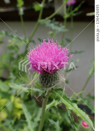一輪のナンブアザミの花のアップ 福島県只見町