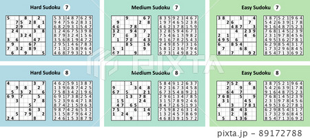 Sudoku Puzzle 9x9 Set 4 Hard with Answers, Fun Brain-Training Game for Kids, Teens and Adults, Vector