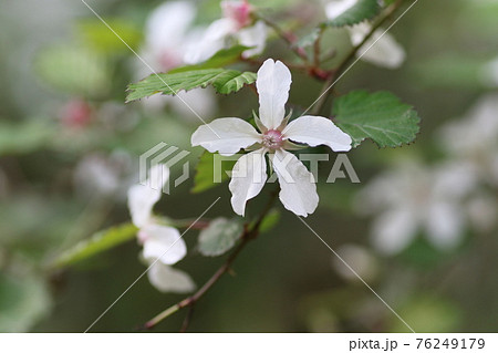 自然 植物 ニガイチゴ、咲いたばかりの花は中心まで白い。花弁にシミもなく美しい