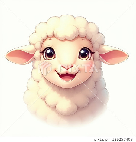 Cute Cartoon Sheep Facing Forward with Broad Smile, Friendly Farm Animal Illustration