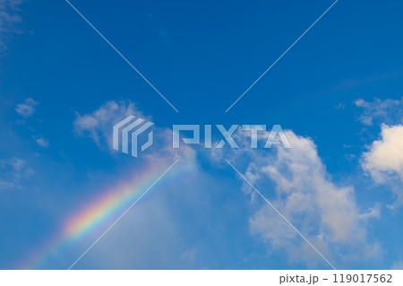 虹 光 七色 希望 青空 太陽光 日差し 太陽 晴天 晴れの背景 入道雲