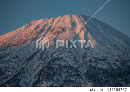 冬の北海道 羊蹄山の西側から夕照の羊蹄山を臨む