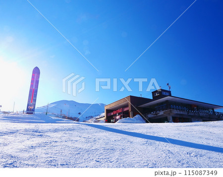 ウィンターシーズンのニセコ東急 グラン・ヒラフ レストハウスAce Hillとスキー板型の温度計