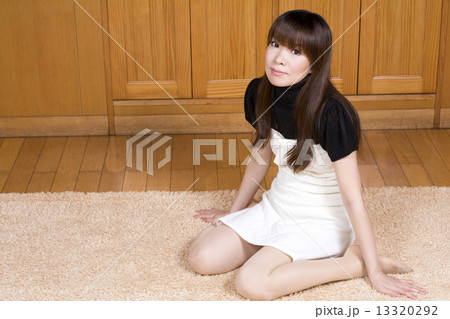ラグマットの上でくつろぐ女性