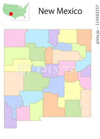 State of New Mexico, divided into 33 counties, outline map. State in the Southwestern region of the United States, one of the Mountain States, nicknamed The Land of Enchantment. Isolated illustration.