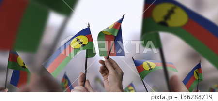Flag of New Caledonia. New Caledonian and Austral Culture. Shining flag with realistic shadows waving in three layers. The elegant curves and realistic shading create a sense of motion