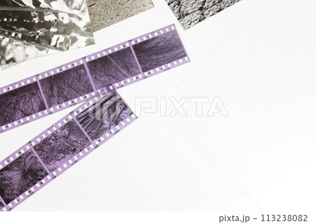 写真のネガフィルム・モノクロフィルム(白背景・コピースペース)