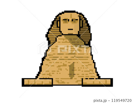 ギザの大スフィンクスのピクセルアートのイラスト 世界遺産 白背景 ベクターデータ