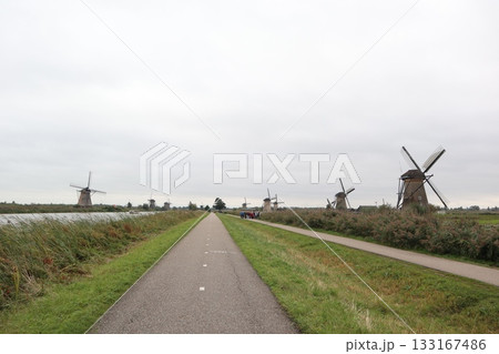 オランダのキンデルダイクの風車群