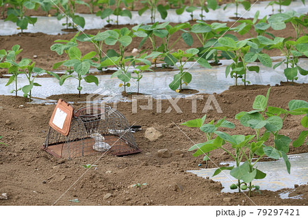 畑に仕掛けられたネズミ捕り 害獣駆除