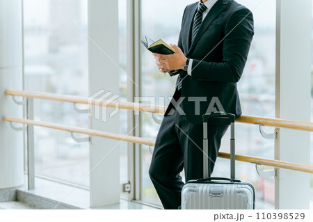 駅・公共施設でスケジュールを確認する男性ビジネスマン