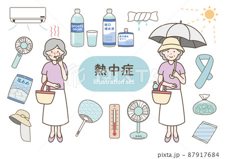熱中症のイラストセット(ご高齢の女性バージョン)