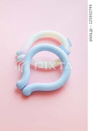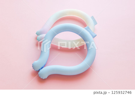 ネックリングとペットボトル入りの水 熱中症対策 冷却グッズ 水分摂取 健康管理 暑さ対策