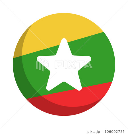 フラットデザインのモダンなミャンマー国旗のアイコン。ベクター。
