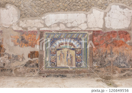 Neptune and Salacia wall mosaic in Herculaneum, Italy