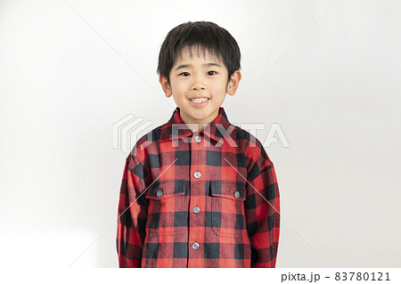 カメラ目線で笑顔の小学生の男の子 ポートレート