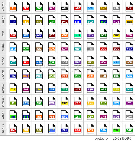 Set file types icons in flat style