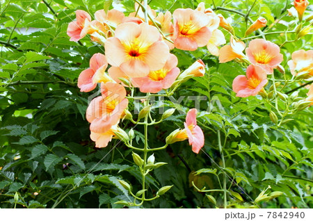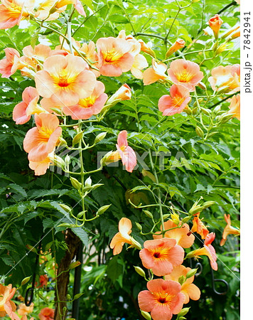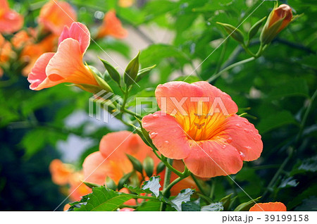 オレンジ色のアメリカノウゼンカズラの花と蕾